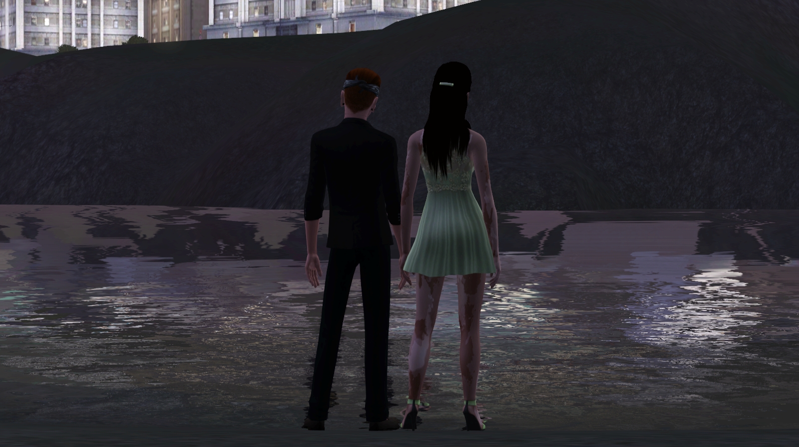 No, tuossa pelissä ( koska Sims3 ) kävikin sitten toisin, sillä toinen tyttäristä jumiutui ja pelipohja hajosi, joten siirsin jäljelle jääneet uuteen kaupunkiin. Tämän jälkeen peli ei enää tulkinnut heitä serkuiksi ja tarina muutti muotoaan ja heistä tulikin pariskunta.